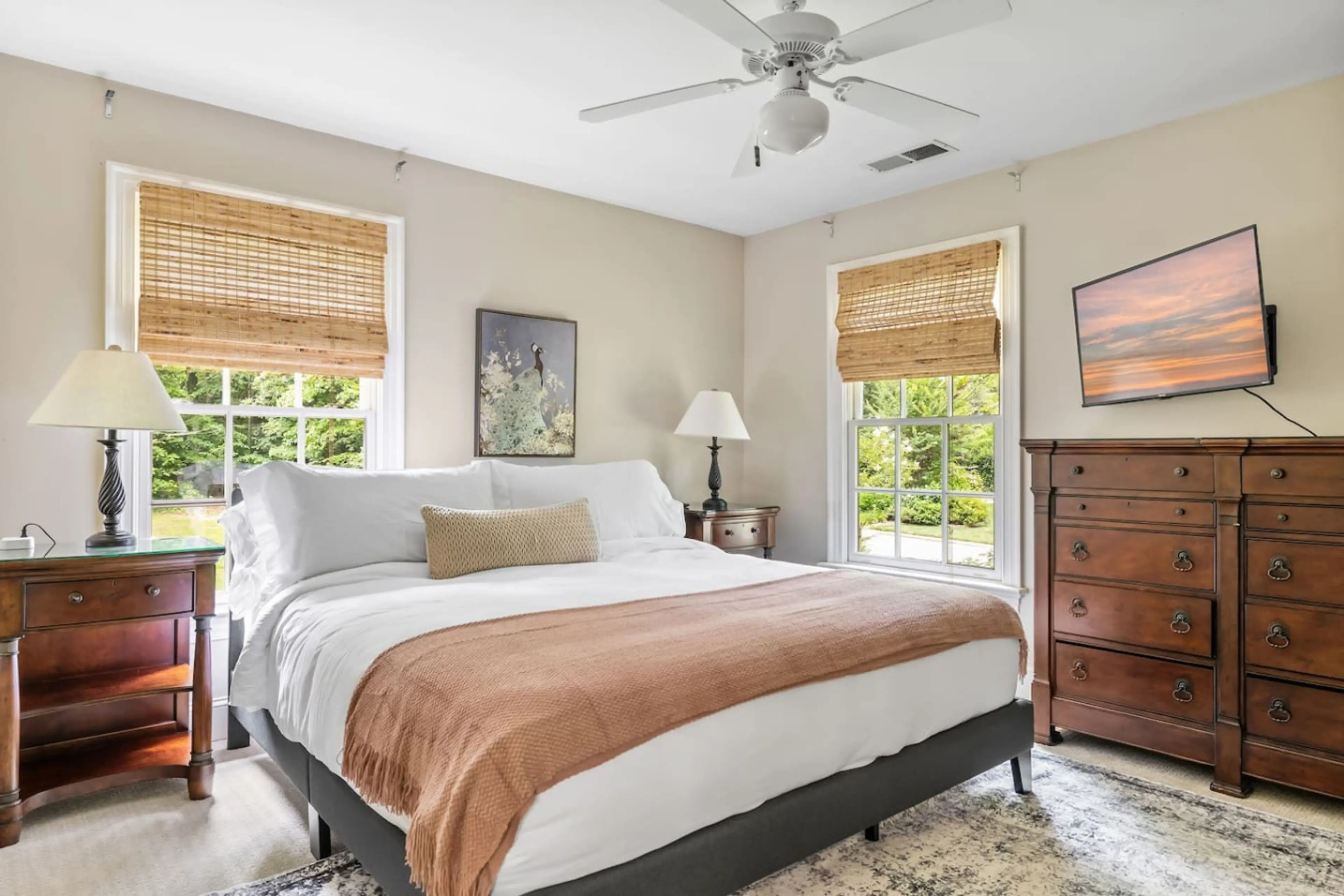 We stayed at the cabin for my son's wedding. The house was cool! Loved the uniqueness of the cabin room. Very cozy and our adult children loved it. We used the pool table, and the back porch was nice to sit out on. The front living room was comfortable. The rooms were great, beds and pillows very comfortable. The location was close to everything yet felt private. Surrounding neighborhood was quiet. I would stay here again!